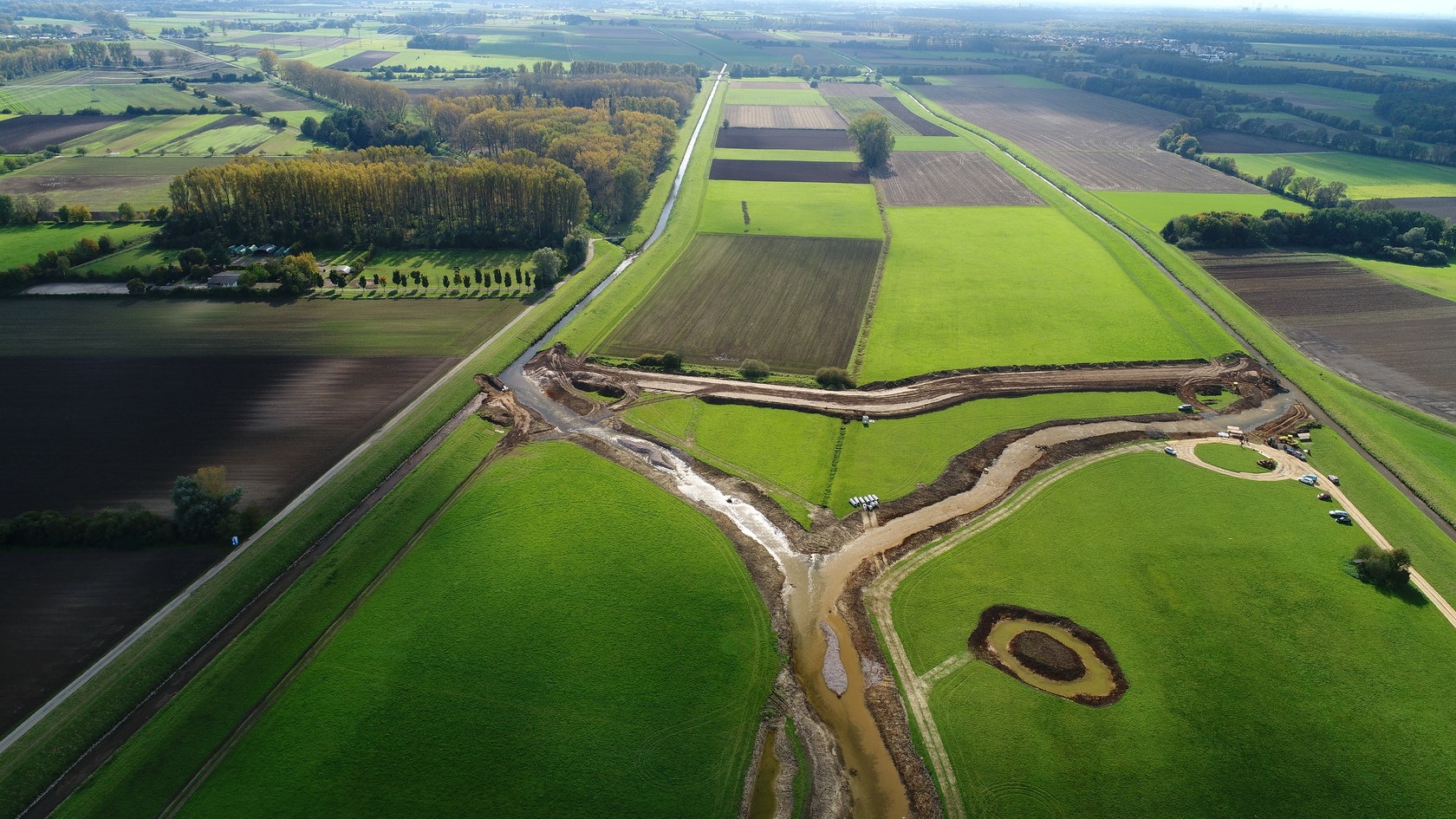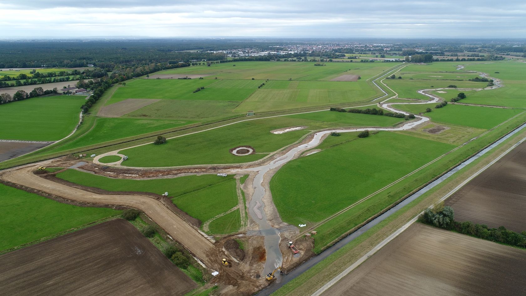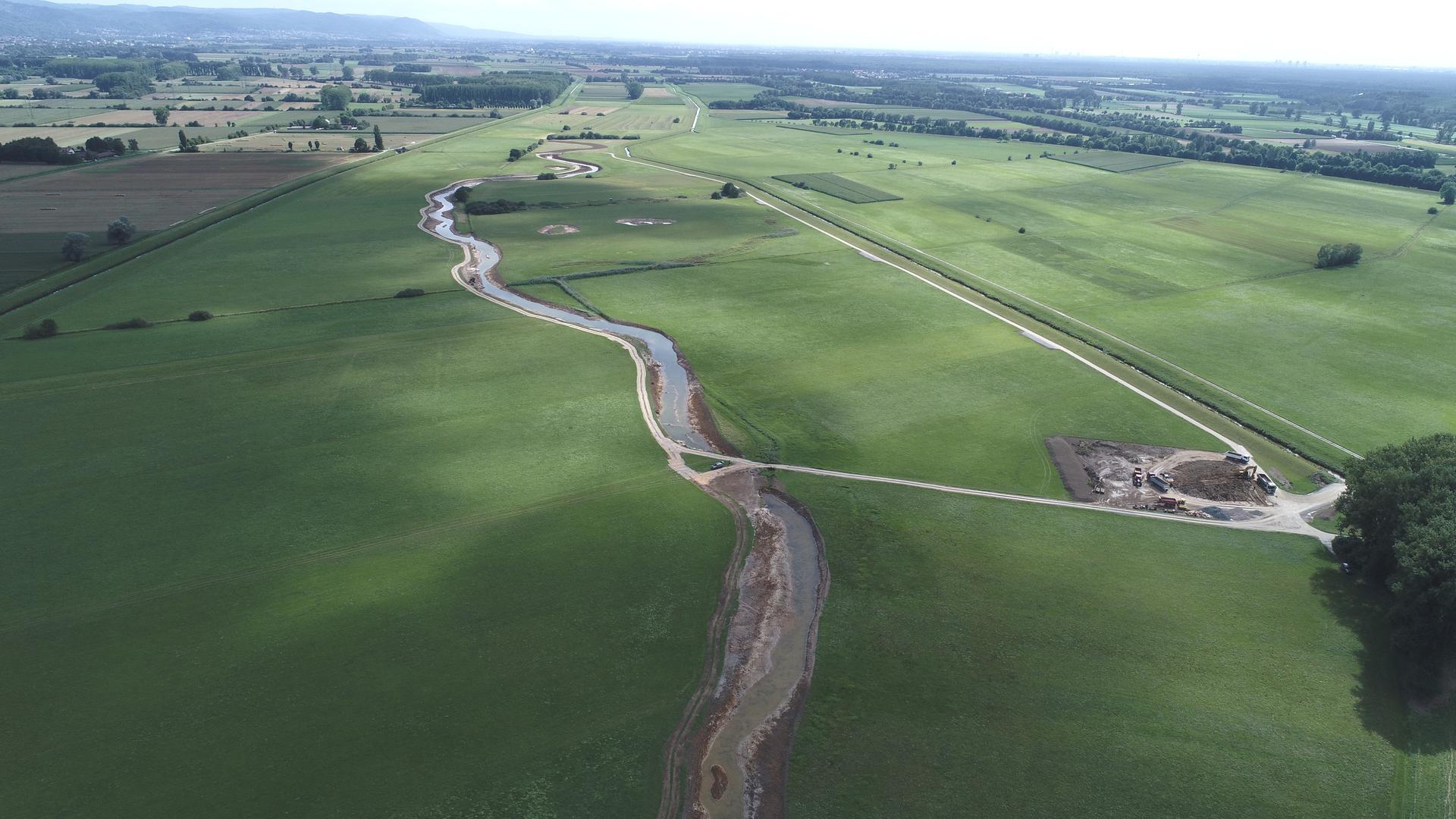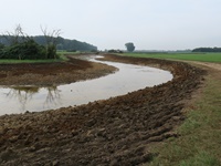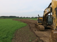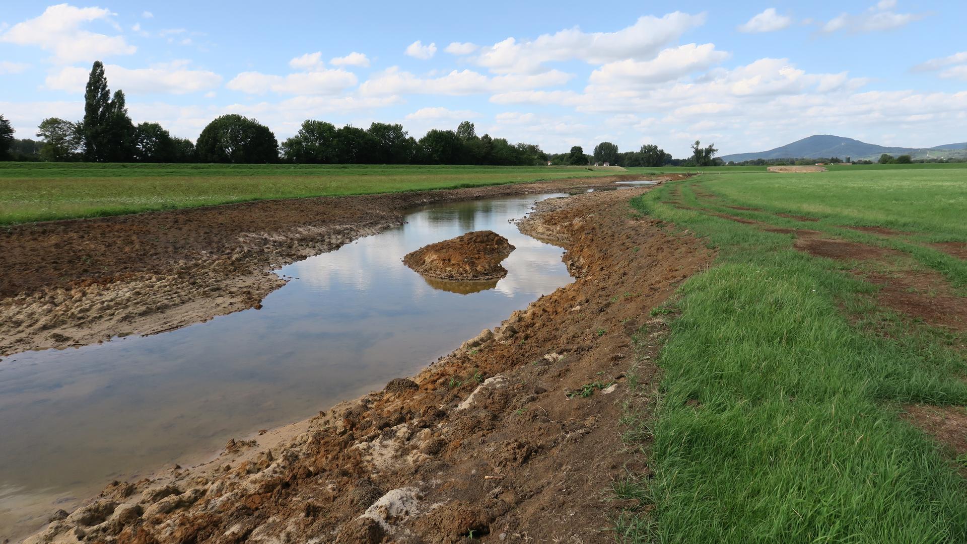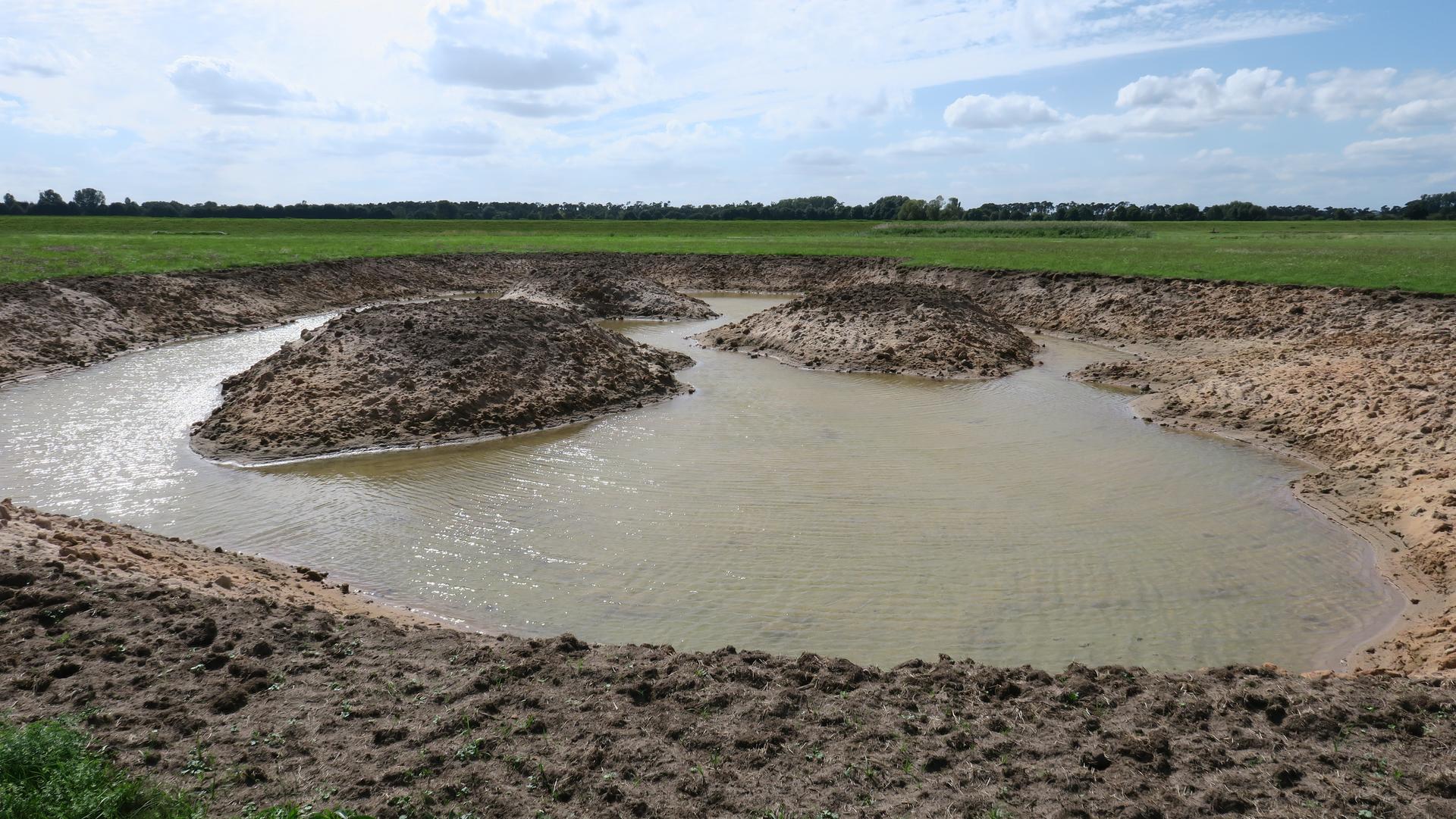 Fast ist es geschafft. Die Erdarbeiten haben das südliche Ende der neuen Gewässertrasse erreicht und die meisten Teiche und Tümpel sind fertiggestellt.