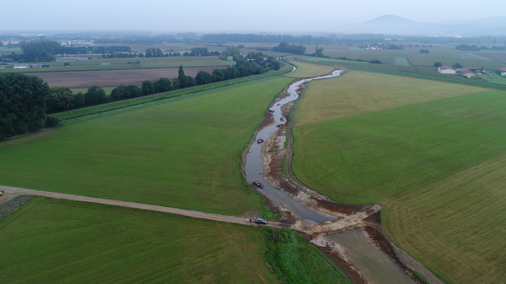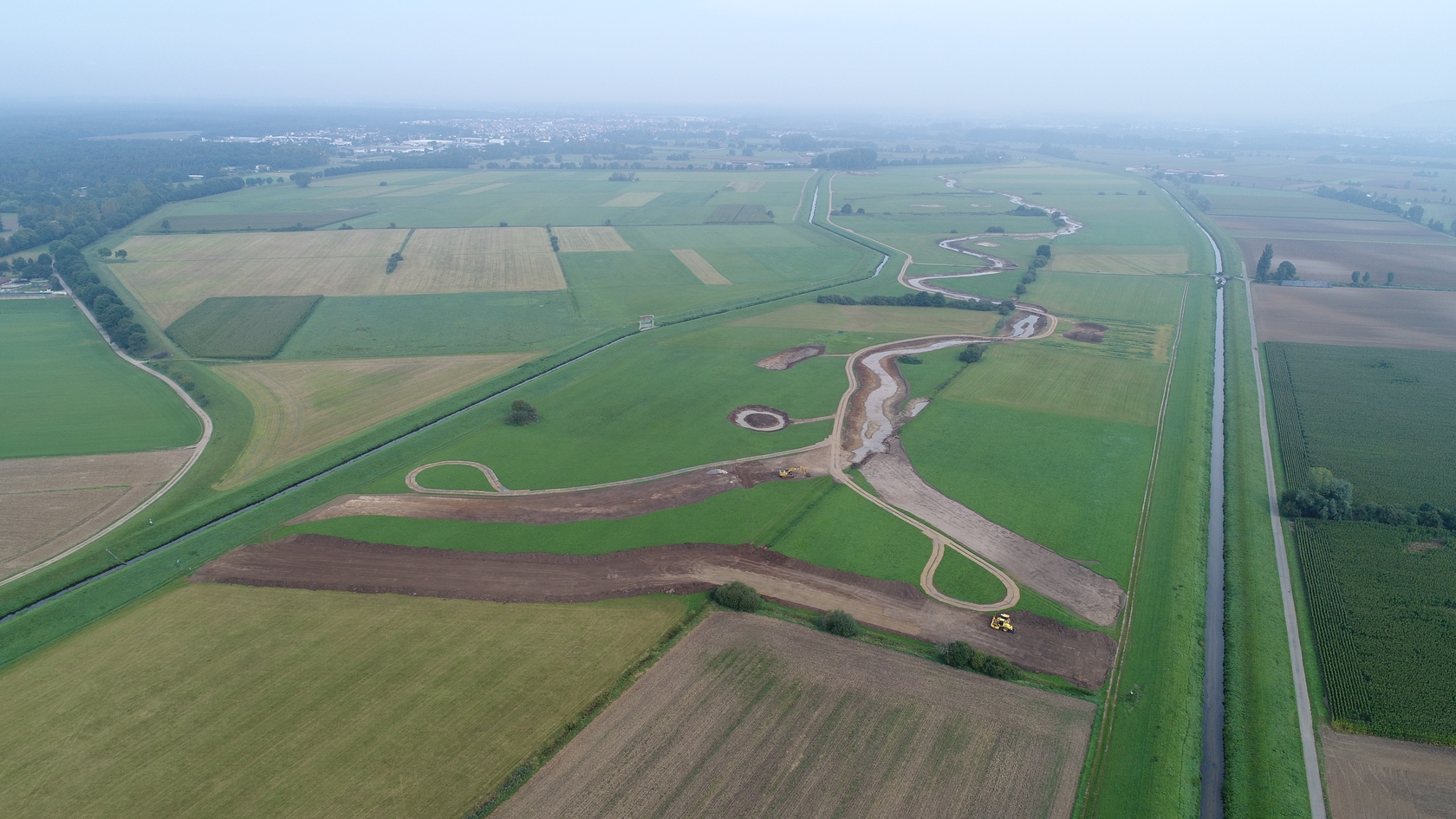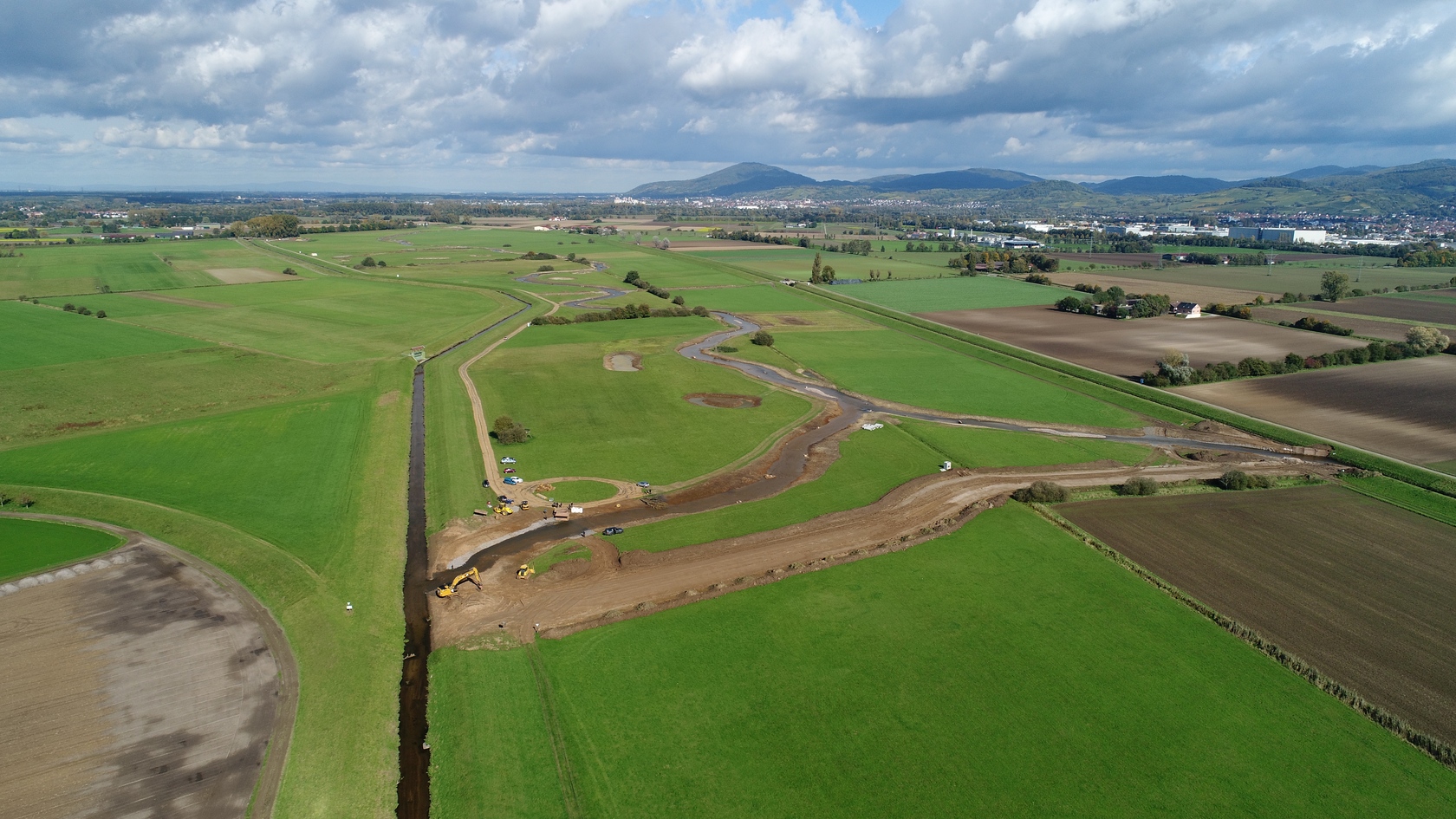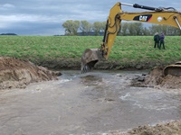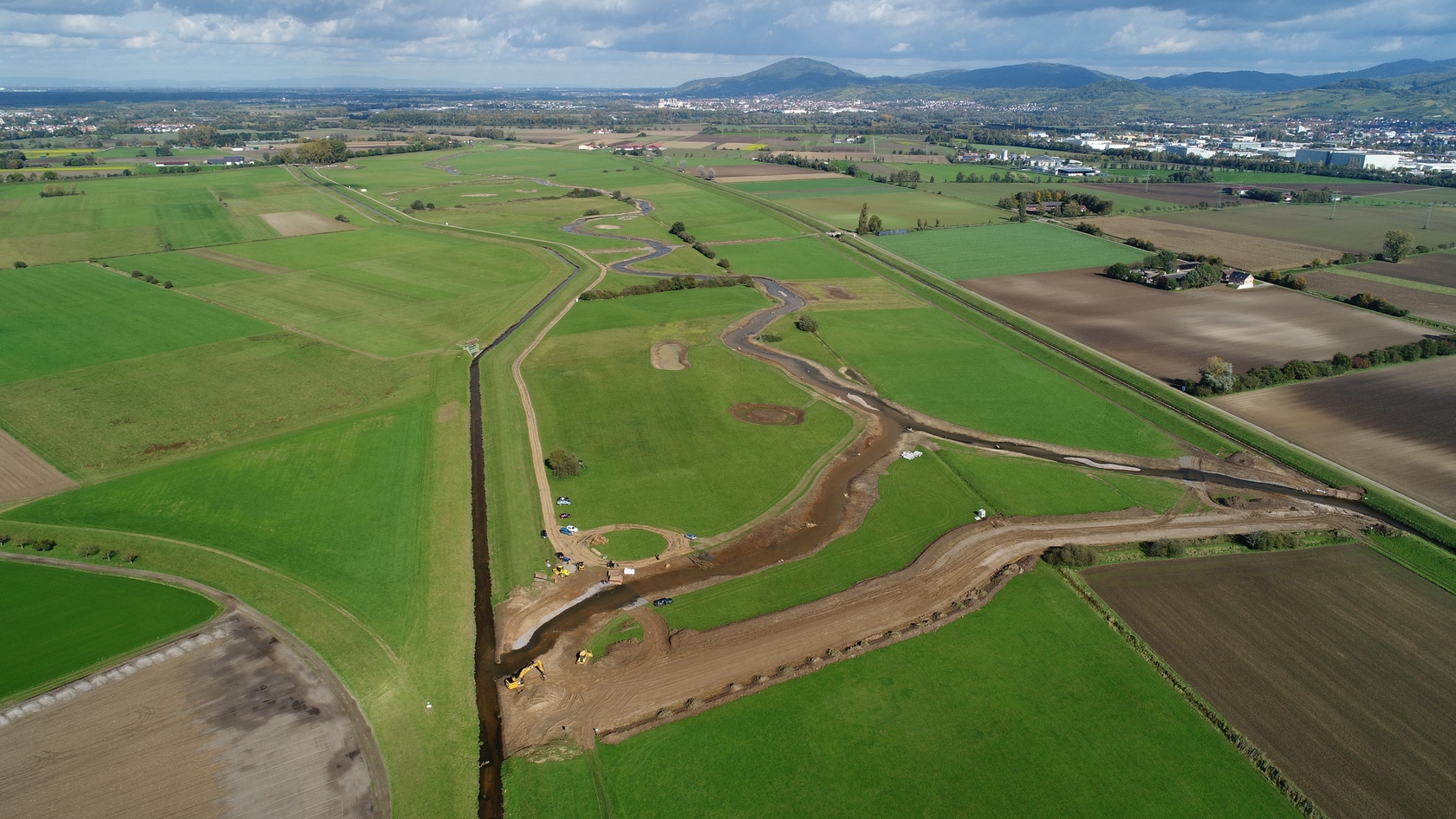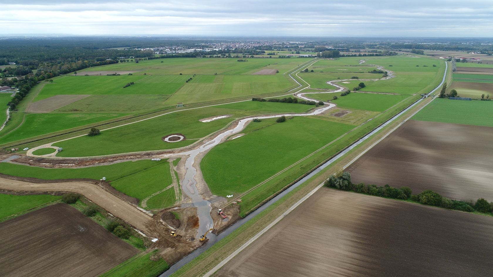 Fast ist es geschafft. Die Erdarbeiten haben das südliche Ende der neuen Gewässertrasse erreicht und die meisten Teiche und Tümpel sind fertiggestellt.