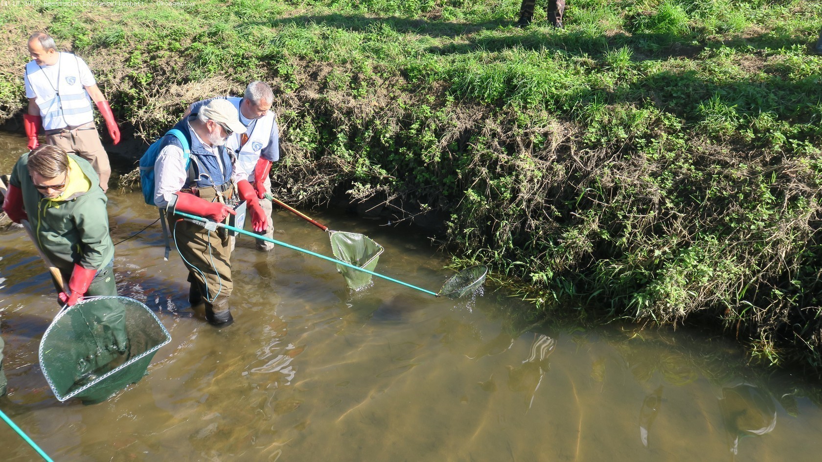 Viele freiwillige Helfer und Profiteams retten Fische, Krebse und Muscheln aus dem trocken fallenden Arm der "Neuen Weschnitz". Perfekt organisiert wurde diese beispiellose Aktion von Rainer Hennings, dem Vorsitzenden des Verbands Hessischer Fischer e.V. und dem Gewässerverband Bergstraße. FILM